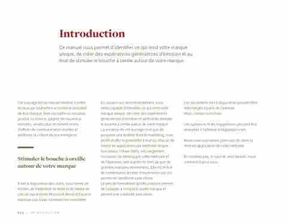 Ce manuel vous permet d’identifier ce qui rend votre marque unique, de créer des expériences génératrices d’émotion et au final de stimuler le bouche à oreille autour de votre marque.
