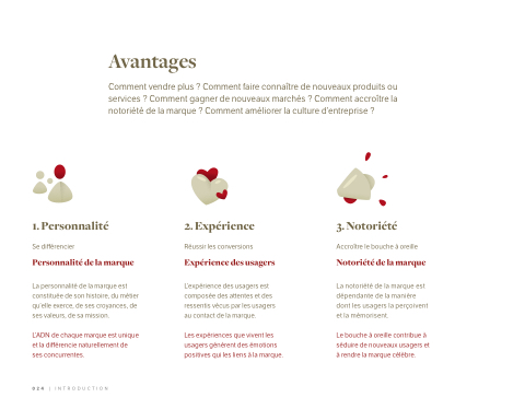 La personnalité de la marque est constituée de son histoire, du métier qu’elle exerce, de ses croyances, de ses valeurs, de sa mission.