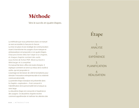 La mise en place d’une stratégie de communication visant à transformer les usagers d’une marque en ambassadeurs est proposée ici en quatre étapes. Chacune d’entre elles fait l’objet d’un chapitre, et chaque chapitre contient des outils